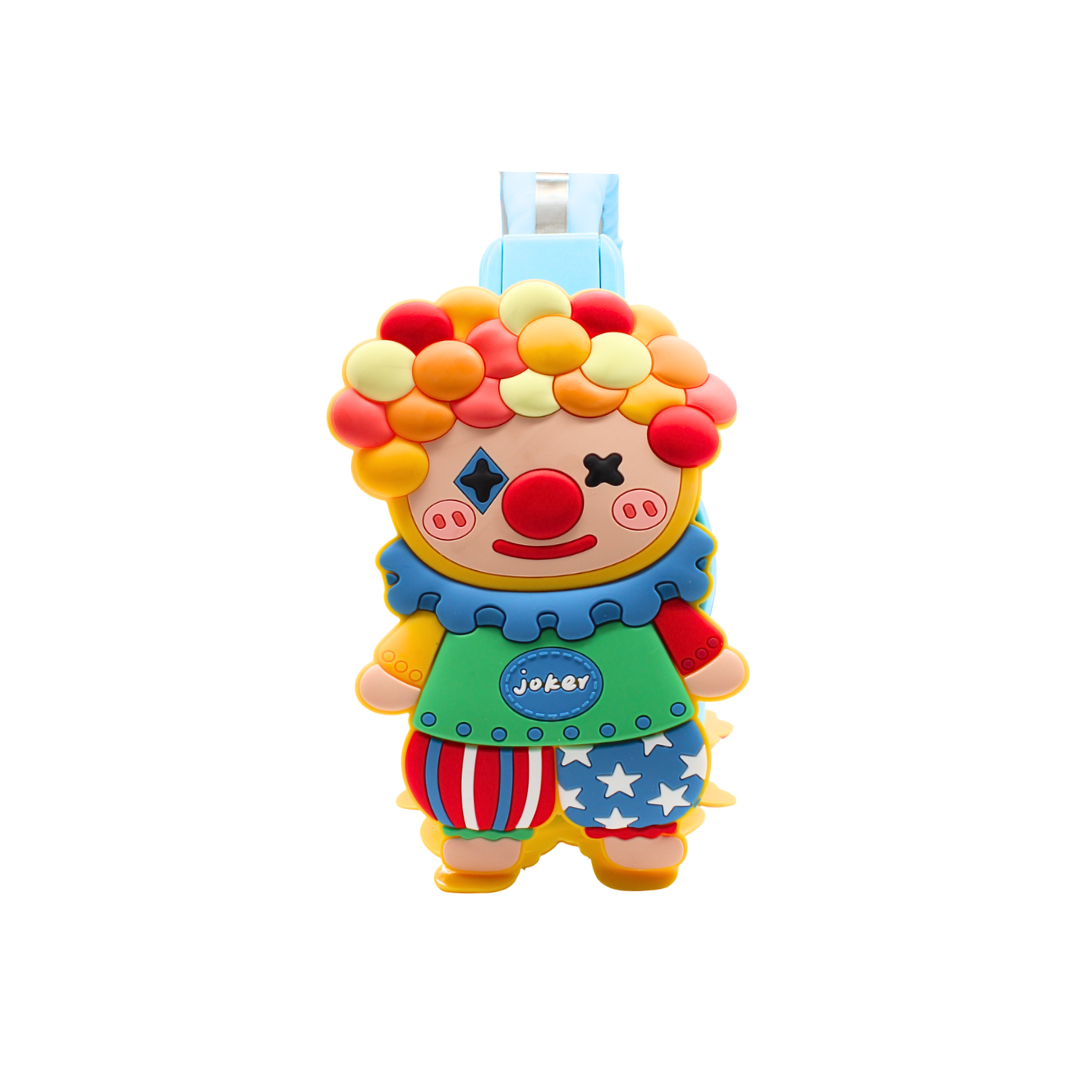 - Diseño Amigable y Divertido: El audífono está decorado con un personaje de payasito con cabello de colores y un moño, ideal para estimular la imaginación. El cuerpo principal es de un brillante color rosa.